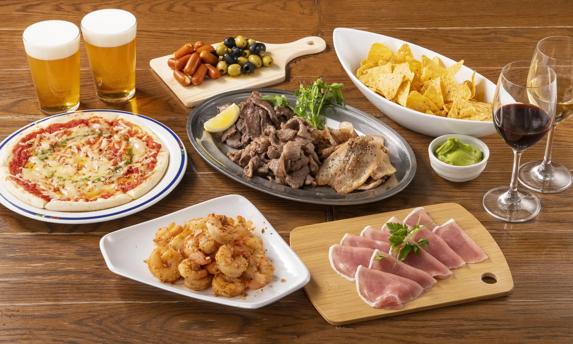 ●チーズ&オリーブ ●ワカモレアボカドディップ ●生ハムプレート ●グリルミートプレート ●ガーリックシュリンプ ●ミックスピザ