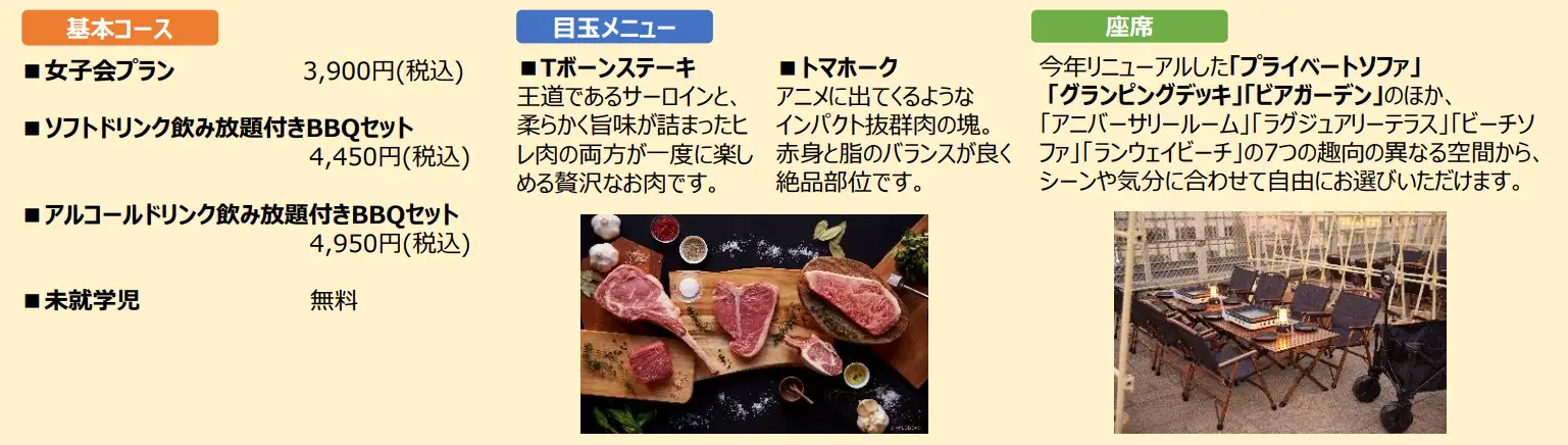 ▶今年からお子様メニュー新登場、ソファー席でもゆったりBBQが楽しめます