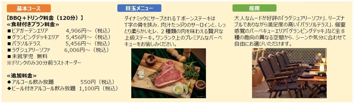 ※雨天時一部エリア中止 ※荒天時中止 ※全席禁煙