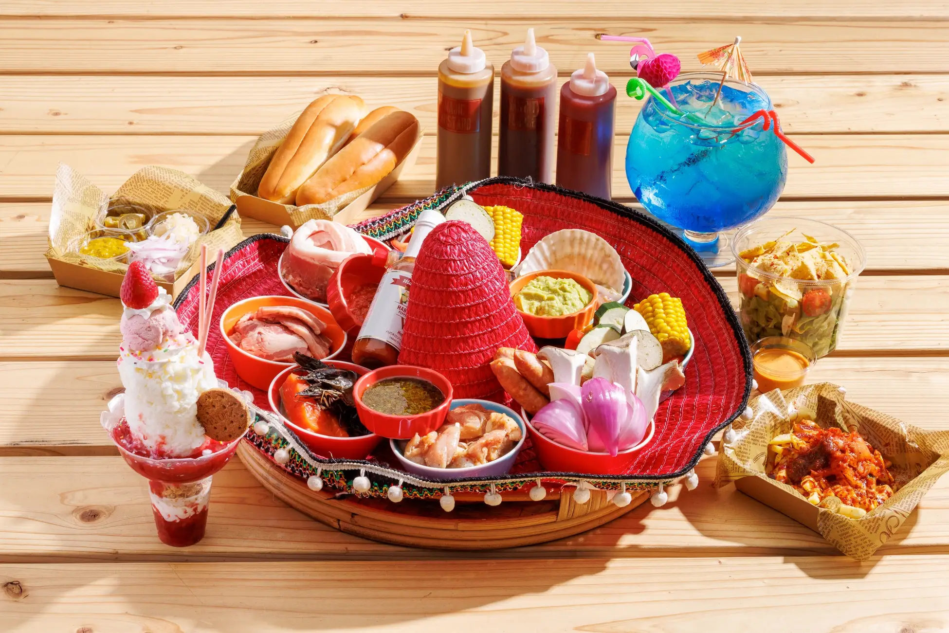 アメリカンコースからは、アボカドとオリーブオイルチキンのコブサラダやホットドック、韓国コースからはサムギョプサルやいちごのふわふわソルビン、メキシカンからはキュートな帽子に乗ったBBQプレートをピックアップ!