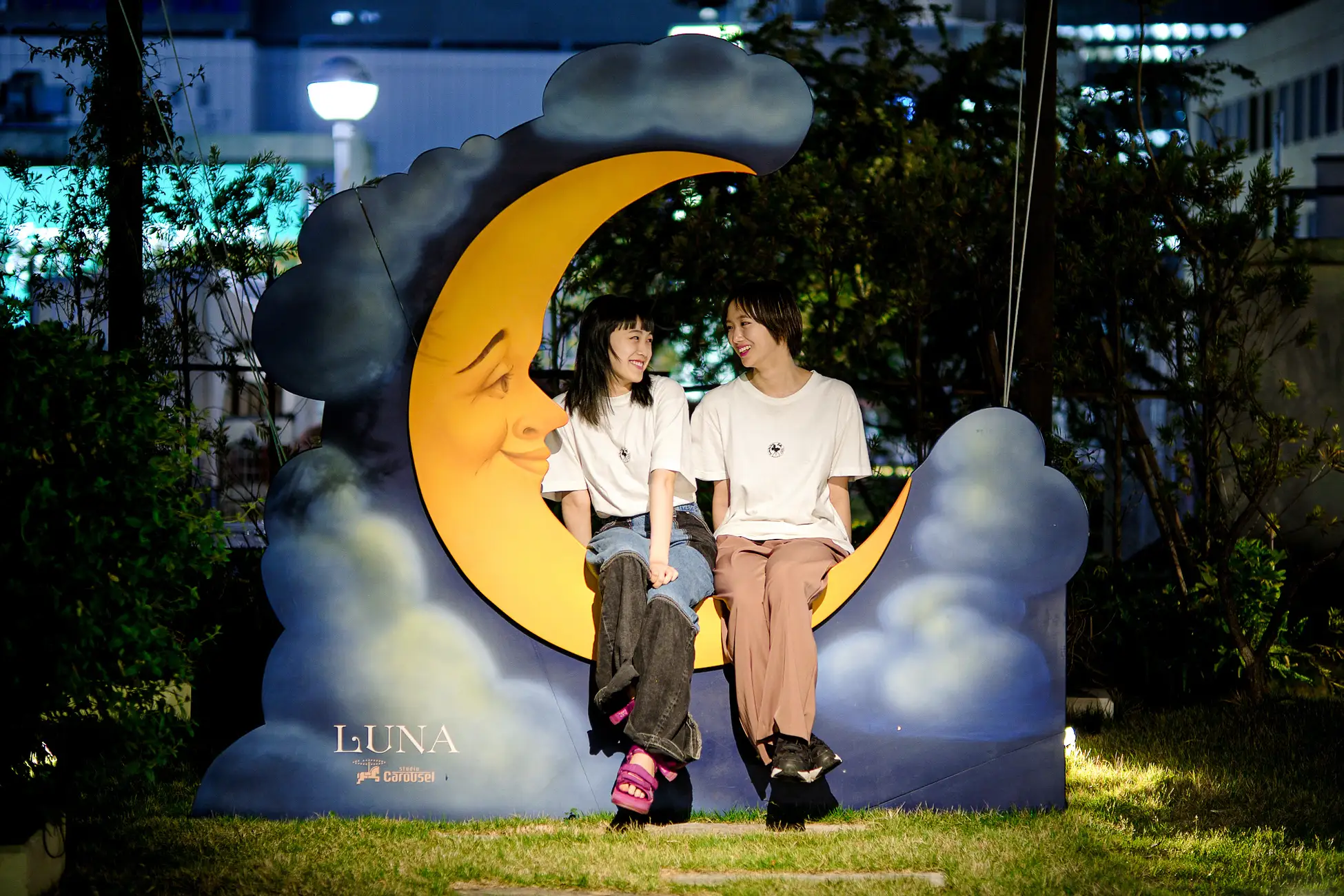 屋上に広がる開放的な空間にある「空のアミューズメントパーク」がビアガーデンのテーマ。メリーゴーランドやエスニックなアートなど、ポップでフォトジェニックなフォトスポットを多数用意している。