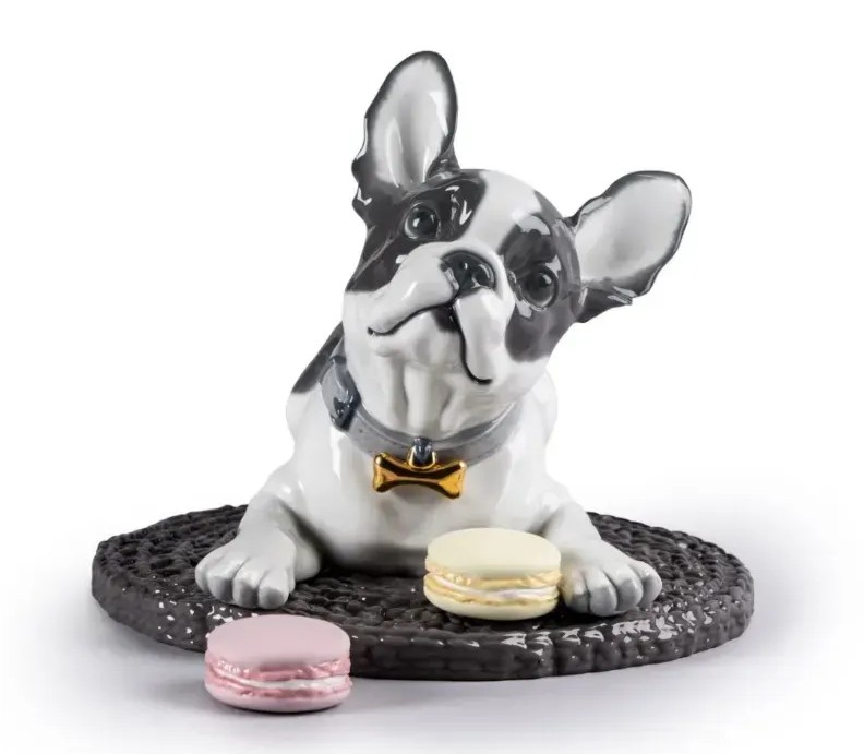 リヤドロ「フレンチブルドッグとマカロン」(DOG&CANDYコレクション)